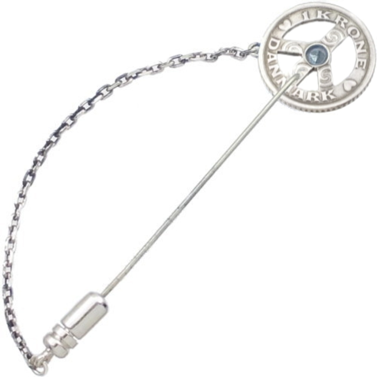 北欧の高福祉で国民の幸福感の高さでも知られるデンマーク、その「幸せを呼ぶコイン」と呼ばれるデンマーククローネをシルバーに仕上げたストーンラペルピン。