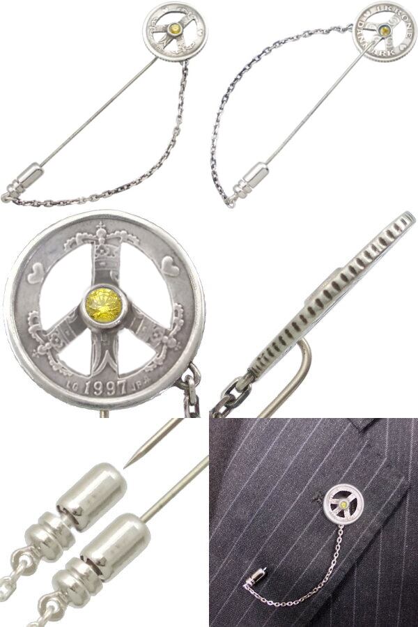 イエローC Z クローネ ピース コイン チェーン シルバー ラペルピン△キュービックジルコニア使用*BK-1056