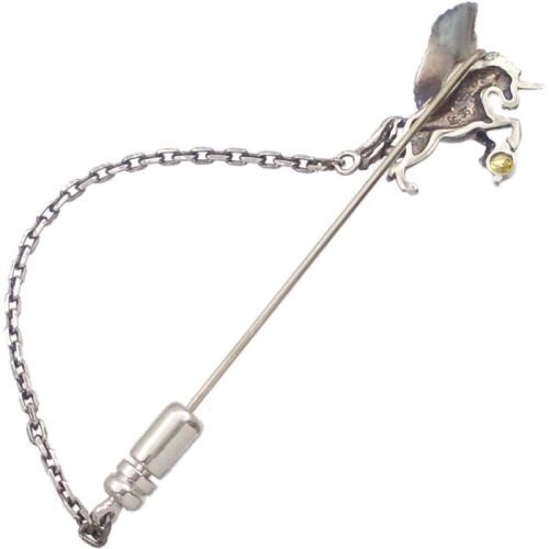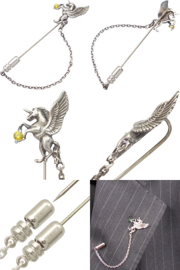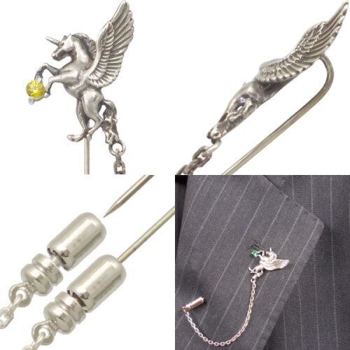 イエローC Z 有翼の ユニコーン チェーン シルバー ラペルピン△キュービックジルコニア使用*BK-1057