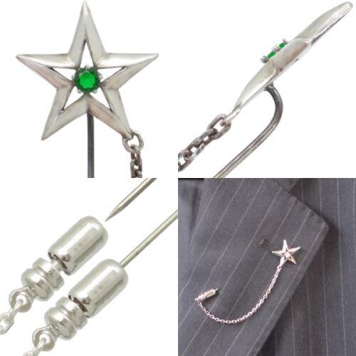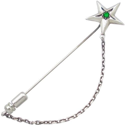 (5月)エメラルドグラス ツイン スター チェーン シルバー ラペルピン 誕生石*BK-1059