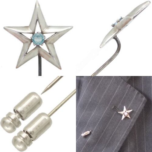 (11月)ブルートパーズ ツイン スター シルバー ラペルピン 誕生石*BK-1060
