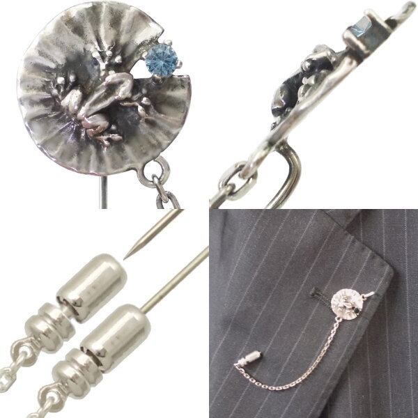 (12月)タンザナイト カエルとスイレン チェーン シルバー ラペルピン 誕生石*BK-1067
