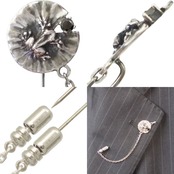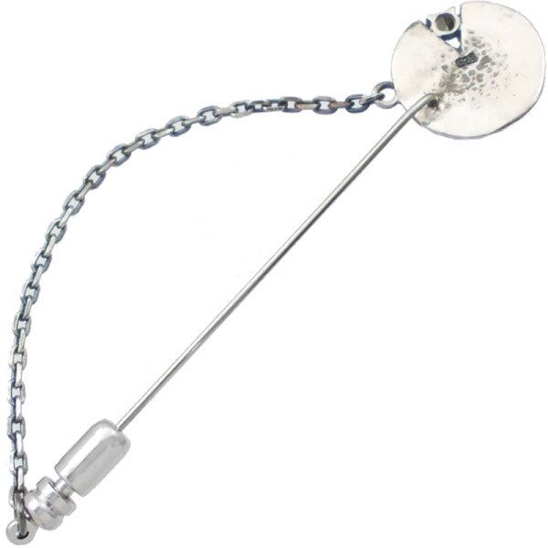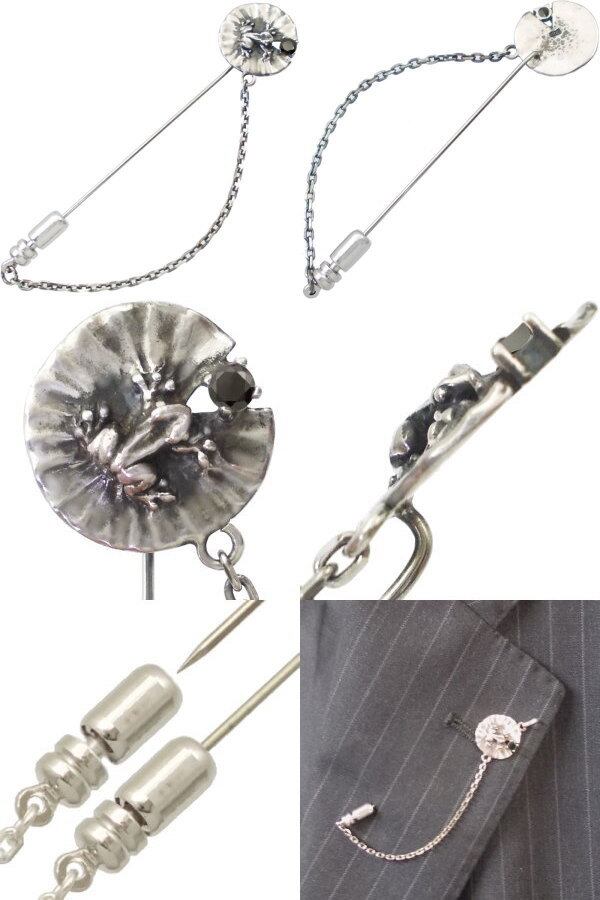 ★睡蓮の葉に張り付くカエルとその切れ目にストーンをセッティングしたチェーンラペルピン。