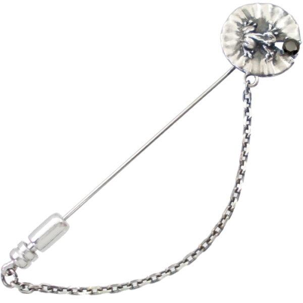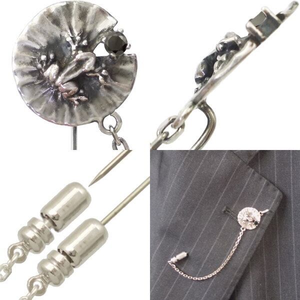 ブラックCZ カエルとスイレン チェーン シルバー ラペルピン△キュービックジルコニア使用*BK-1067