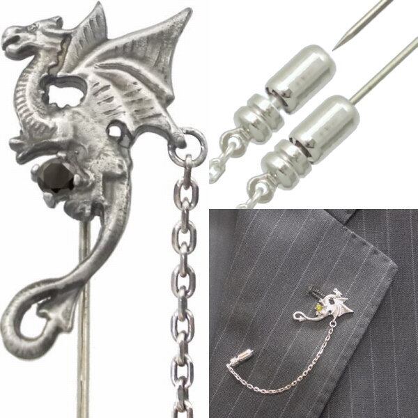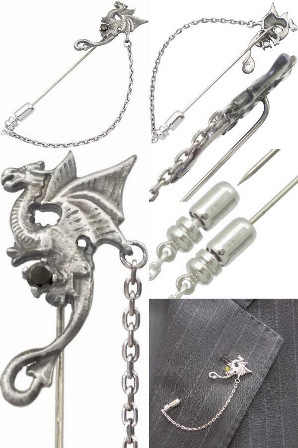ドラゴンモチーフをリアルさよりヨーロピアンアンティークを意識して仕上げたラペルピン。バースデーストーンの他にもシックなブラックと運気が上がりそうなイエロージルコニアも用意、好みのカラーでも選べる14色。