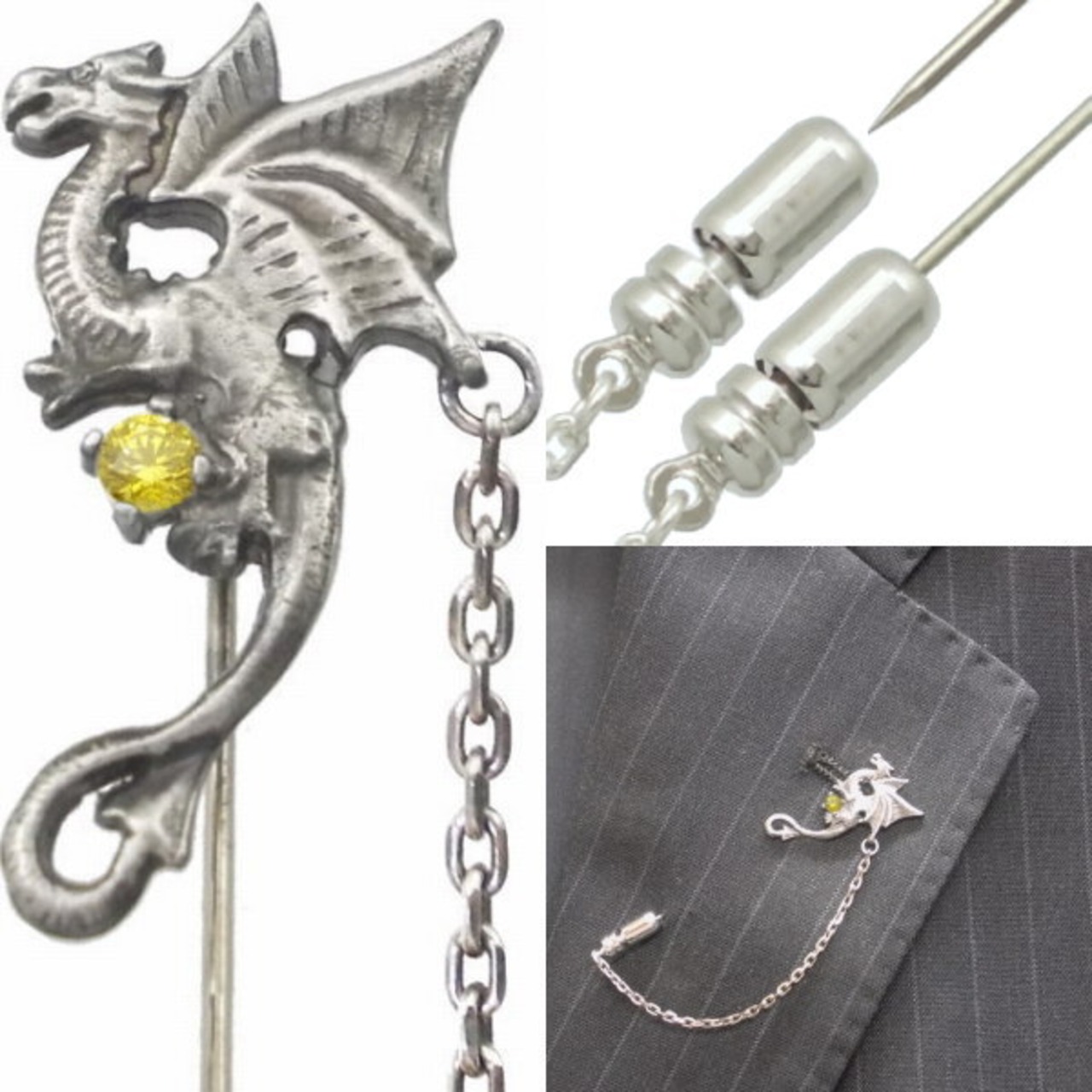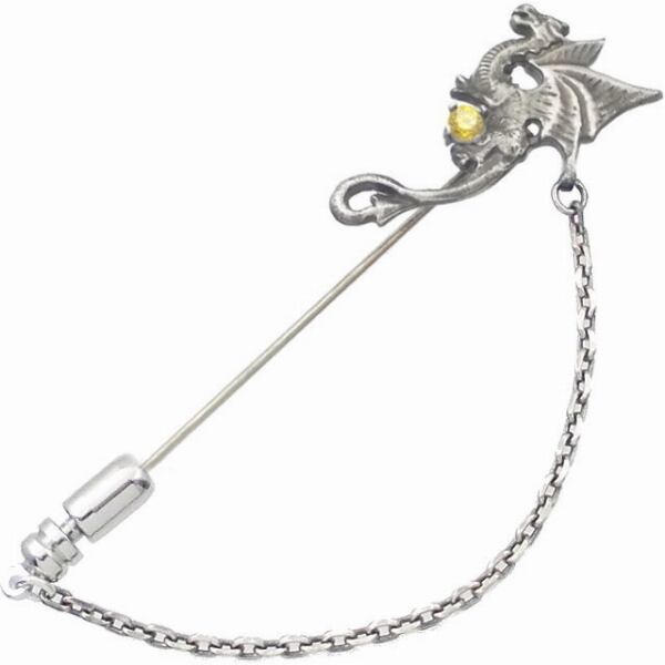 イエローC Z ユーロ ドラゴン チェーン シルバー ラペルピン△キュービックジルコニア使用*BK-1076