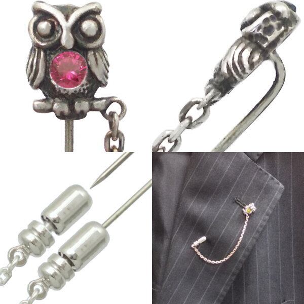 (7月)ルビー ふくろう チェーン シルバー ラペルピン 誕生石*BK-1080