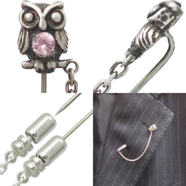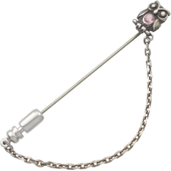 (10月)ピンクトルマリン ふくろう チェーン シルバー ラペルピン 誕生石*BK-1080