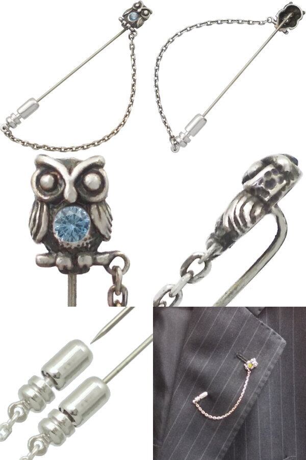 (12月)タンザナイト ふくろう チェーン シルバー ラペルピン 誕生石*BK-1080