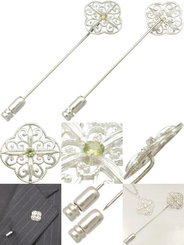 (8月)ペリドットオリエントクロス シルバー ラペルピン 誕生石*BK-391