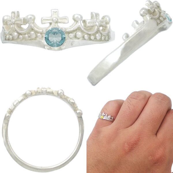 (11月)ブルートパーズ ホワイト クロス クラウン シルバーリング 誕生石*BR-1034