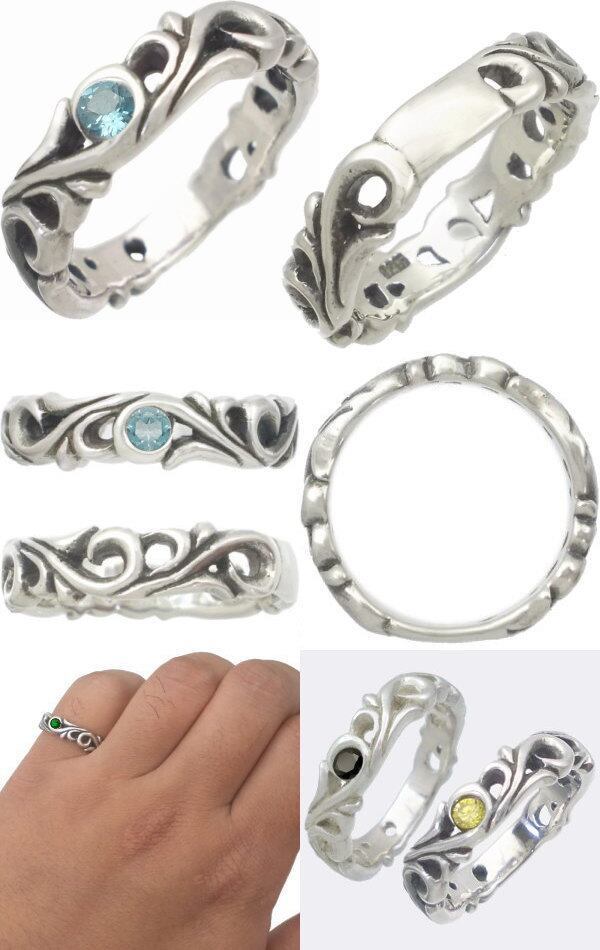 シンプルな唐草デザインに誕生石をセッティングした適度なボリューム感のあるリング。飽きの来ないデザインとホワイトとブラックの仕上げで変わるイメージにも注目。