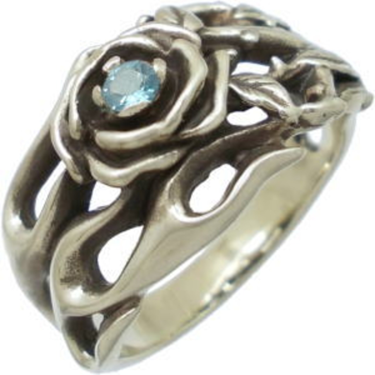 (11月)ブルートパーズ ファイヤー ローズ シルバー リング 誕生石*R-1014