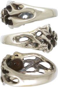 側面は薔薇のツタが絡み合う繊細なデザインと力強く燃え上がるファイヤーパターンの対照的なコンビネーション。付ける向きで違う表情を見せるアシンメトリな使い方も魅力。