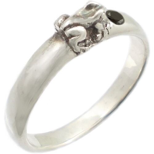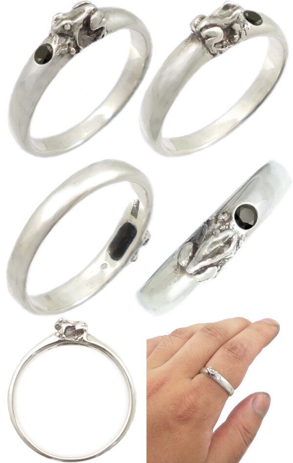 ブラックCZ 福迎 カエル シルバー リング△キュービックジルコニア使用*R-471