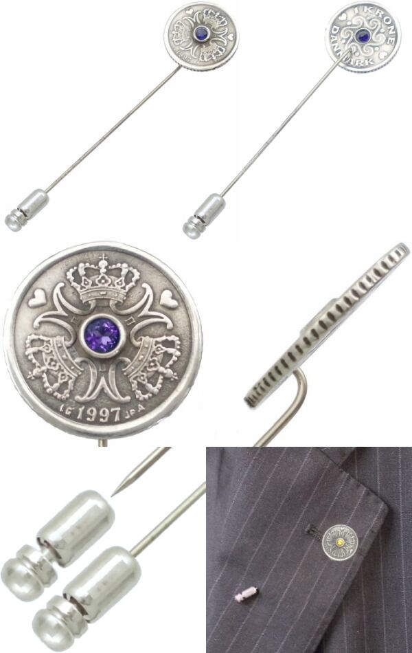 北欧の高福祉で国民の幸福感の高さでも知られるデンマーク、その「幸せを呼ぶコイン」と呼ばれるデンマーククローネをシルバーに仕上げたストーンラペルピン。