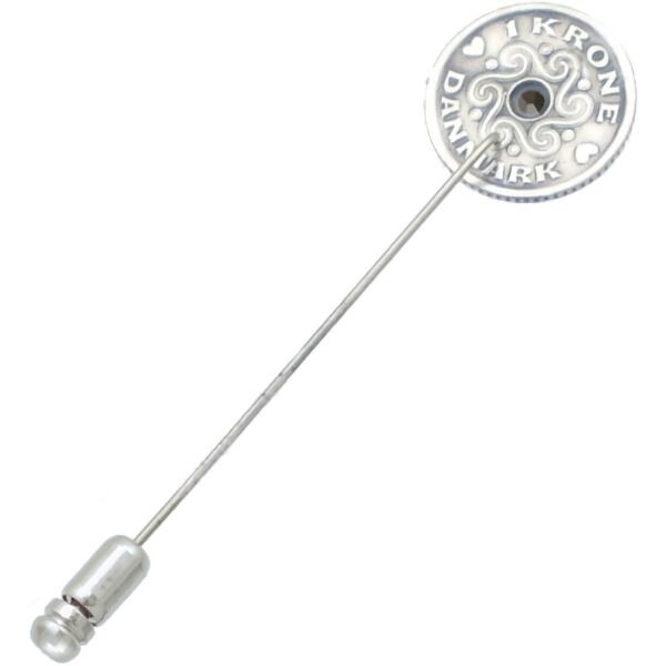 北欧の高福祉で国民の幸福感の高さでも知られるデンマーク、その「幸せを呼ぶコイン」と呼ばれるデンマーククローネをシルバーに仕上げたストーンラペルピン。