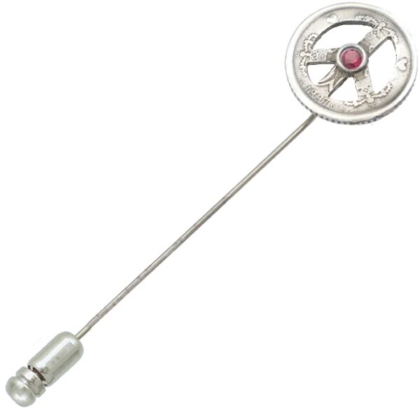 (7月)ルビー クローネ ピース コイン シルバー ラペルピン 誕生石*BK-1085
