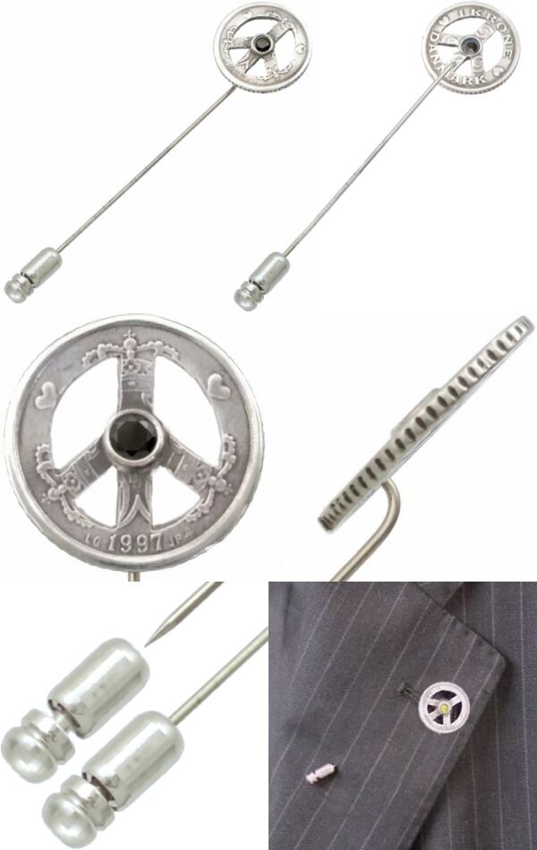 北欧の高福祉で国民の幸福感の高さでも知られるデンマーク、その「幸せを呼ぶコイン」と呼ばれるデンマーククローネをシルバーに仕上げたストーンラペルピン。