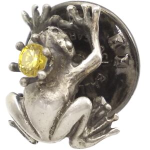 福帰るとも呼ばれ縁起物としても知られる可愛いカエルがモチーフのピンズ。胸元にチョコンと留まる様はなんとも微笑ましい。しかも多彩にバースデーストーンの他ブラックイエロージルコニアをラインナップ。