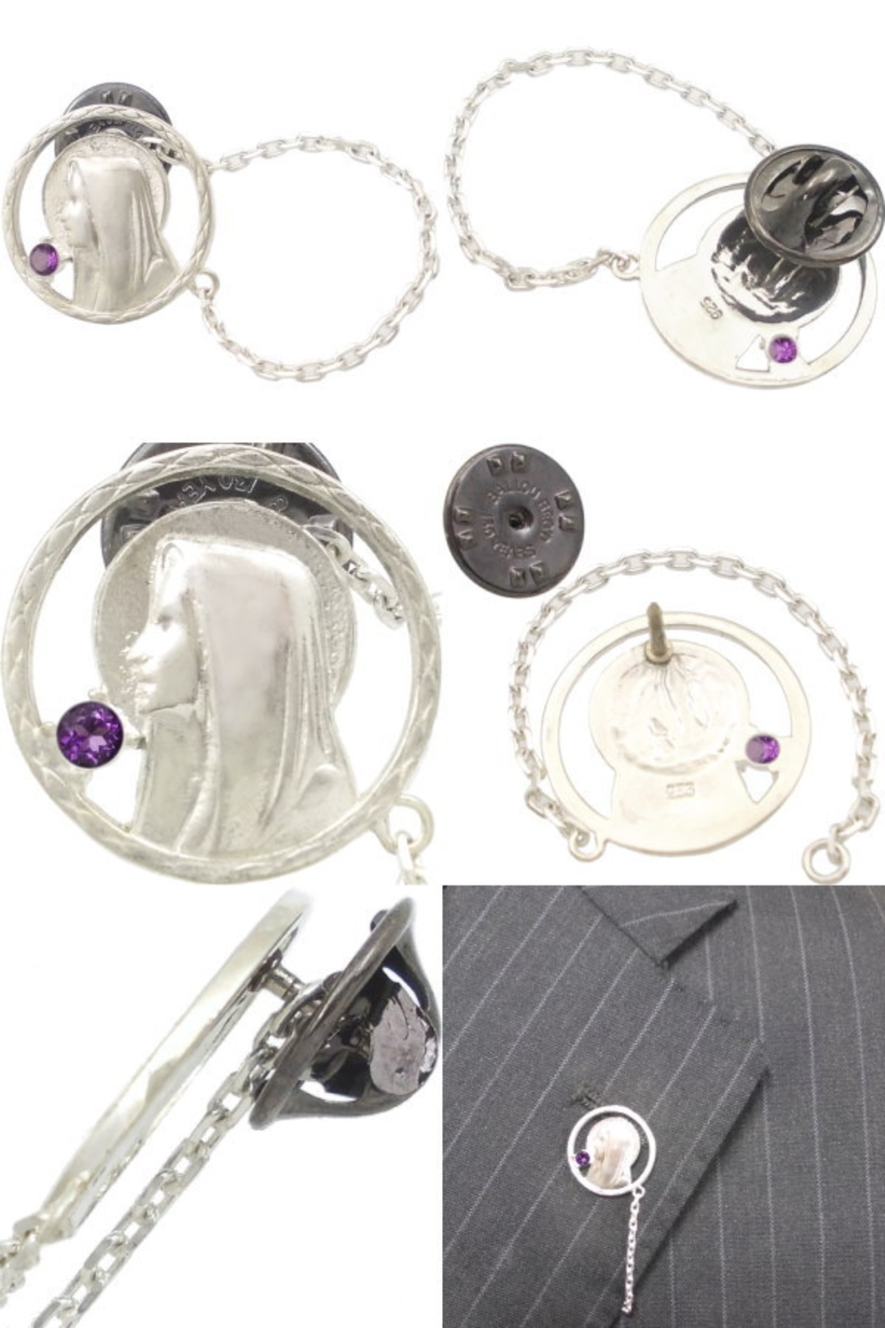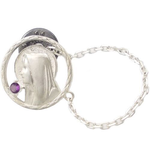 (2月)アメジスト マリアコインチェーン シルバー ピンバッジ ピンズ 誕生石*BK-1030