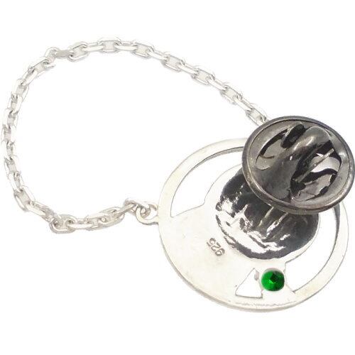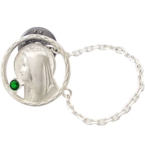 (5月)エメラルドグラス マリアコインチェーン シルバー ピンバッジ ピンズ 誕生石*BK-1030