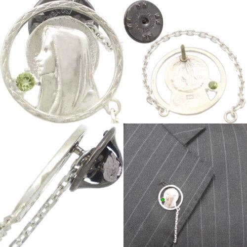 (8月)ペリドット マリアコインチェーン シルバー ピンバッジ ピンズ 誕生石*BK-1030