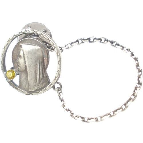 イエローC Z マリアコインチェーン シルバー ピンバッジ ピンズ△キュービックジルコニア使用*BK-1031