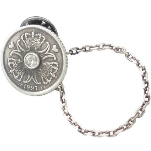 (4月)ジルコニア クローネ コイン チェーン シルバー ピンバッジ ピンズ 誕生石*BK-1036