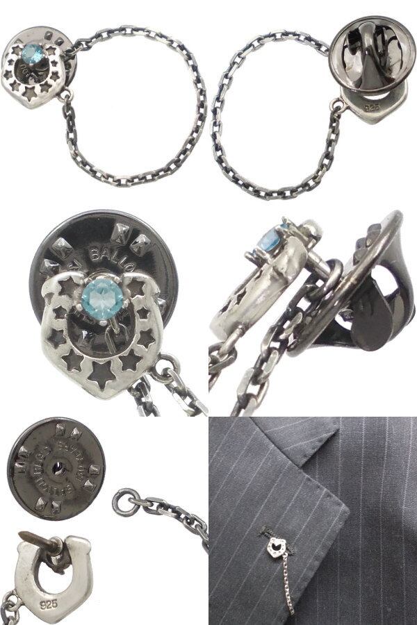 (11月)ブルートパーズ スターホースシューチェーンシルバーピンバッジ ピンズ 誕生石*BK-1043