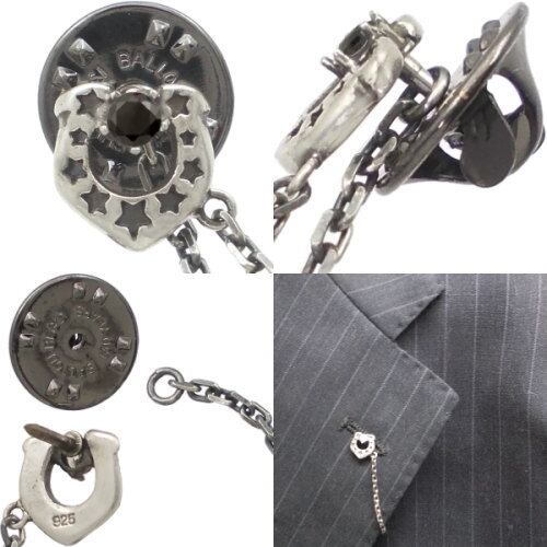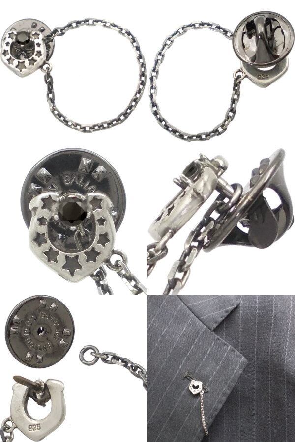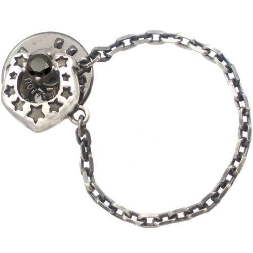 ブラックCZ スターホースシューチェーンシルバーピンバッジ ピンズ△キュービックジルコニア使用*BK-1043