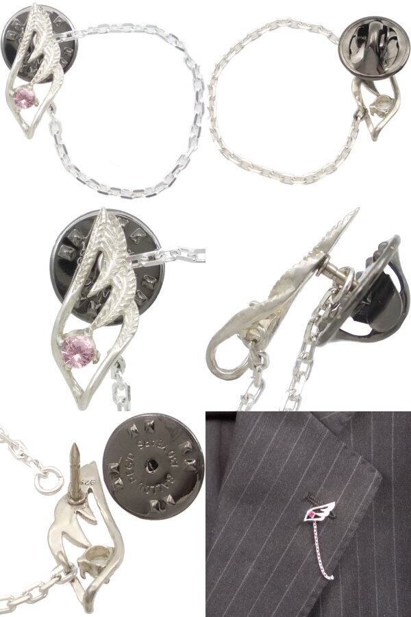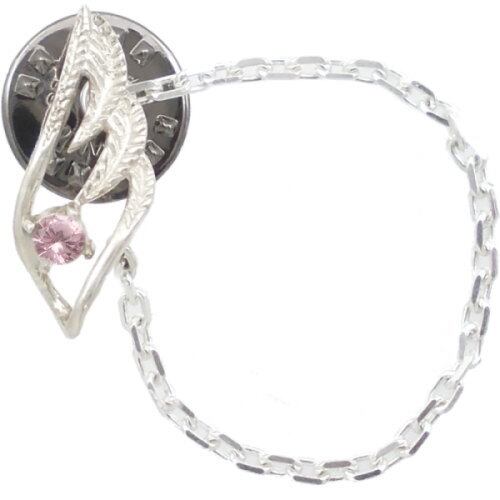 (10月)ピンクトルマリン スモール オープン フェザー チェーン シルバー ピンバッジ ピンズ 誕生石*BK-1048