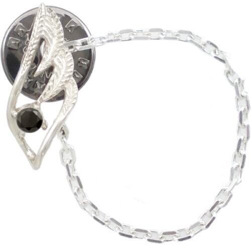 ブラックCZ スモール オープン フェザー チェーン シルバー ピンバッジ ピンズ△キュービックジルコニア使用*BK-1048