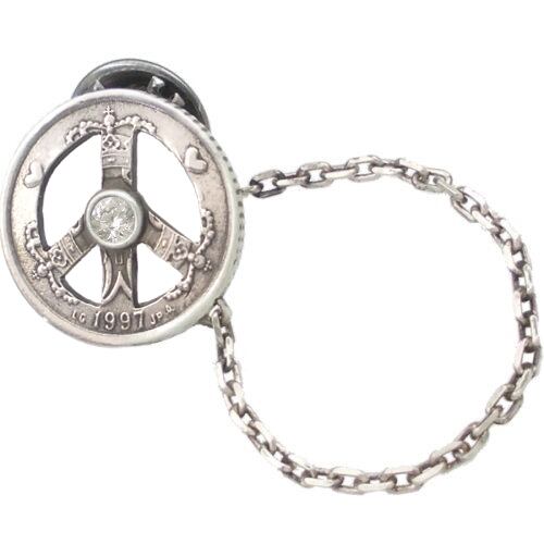 (4月)ジルコニア クローネ コイン ピース チェーン シルバー ピンバッジ ピンズ 誕生石*BK-1055