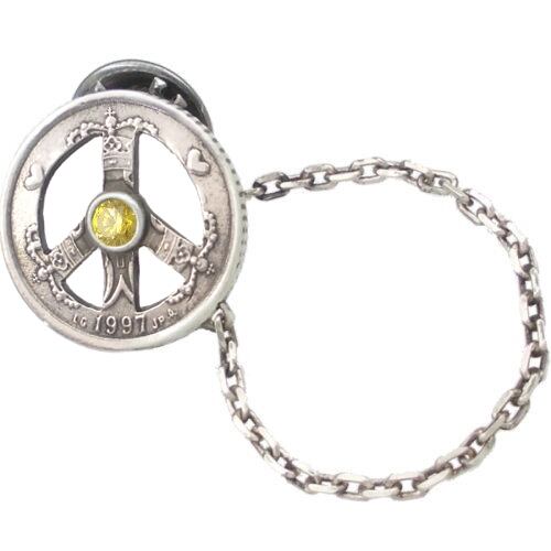 イエローC Z クローネ コイン ピース チェーン シルバー ピンバッジ ピンズ△キュービックジルコニア使用*BK-1055