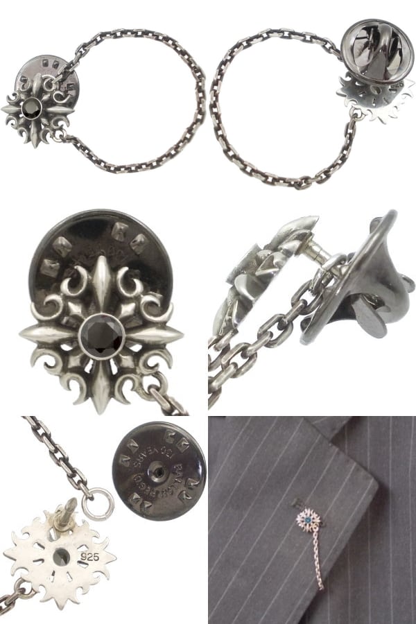 ★シャープなクロスをスクロールの曲線で包んだチェーンピンズ。