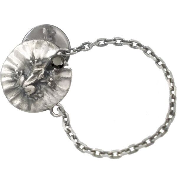 ★睡蓮の葉に張り付くカエルとその切れ目にストーンをセッティングチェーンピンズ。
