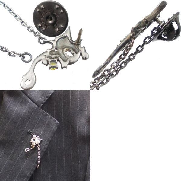 ブラックCZ ユーロ ドラゴン チェーン シルバー ピンバッジ ピンズ△キュービックジルコニア使用*BK-1078