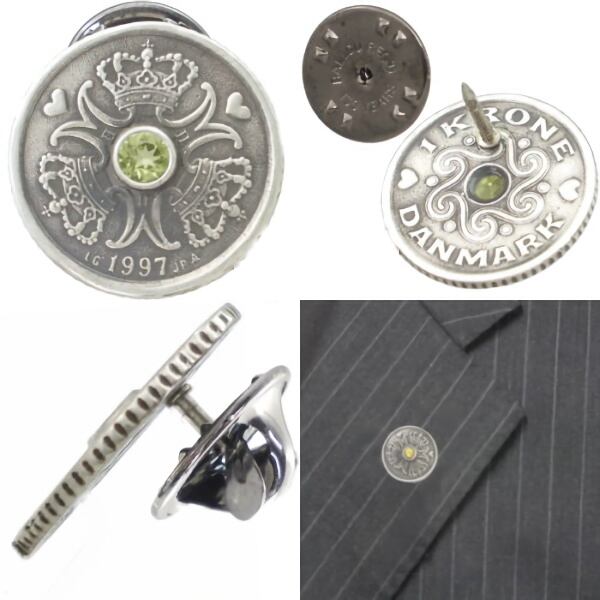 (8月)ペリドット クローネ コイン シルバー ピンバッジ ピンズ 誕生石*BK-1086