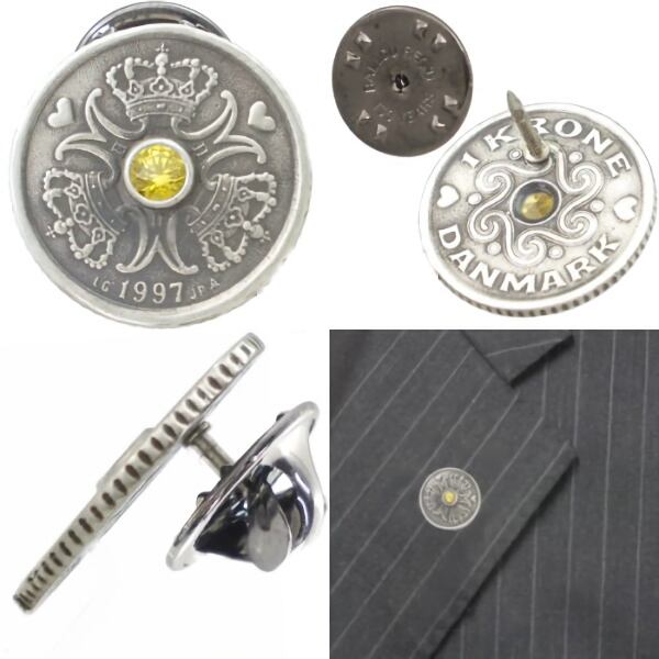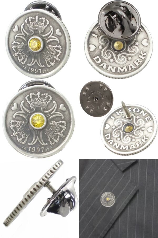 北欧の高福祉で国民の幸福感の高さでも知られるデンマーク、その「幸せを呼ぶコイン」と呼ばれるデンマーククローネをシルバーに仕上げたストーンピンズ。