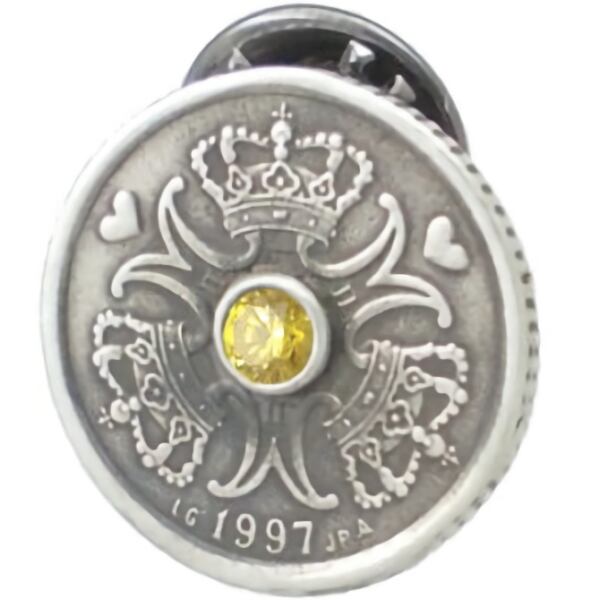 イエローC Z クローネ コイン シルバー ピンバッジ ピンズ△キュービックジルコニア使用*BK-1086