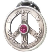(7月)ルビー クローネ コイン ピース シルバー ピンバッジ ピンズ 誕生石*BK-1087