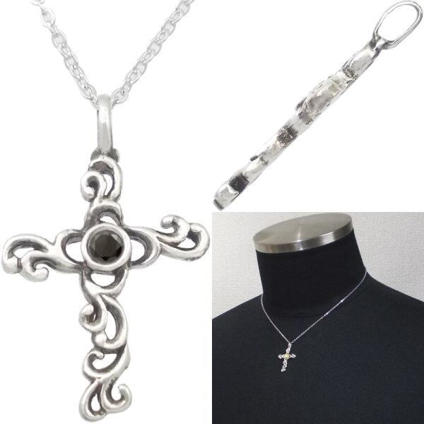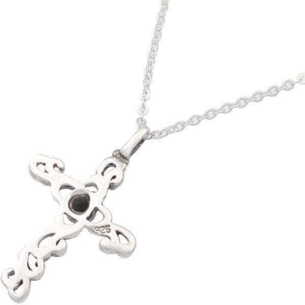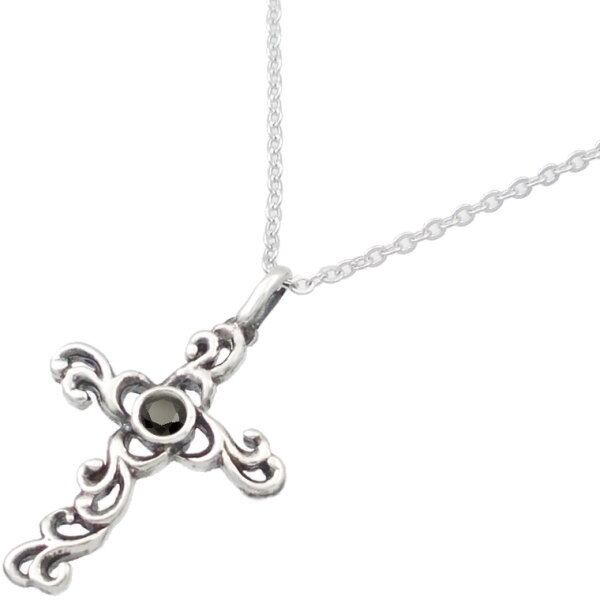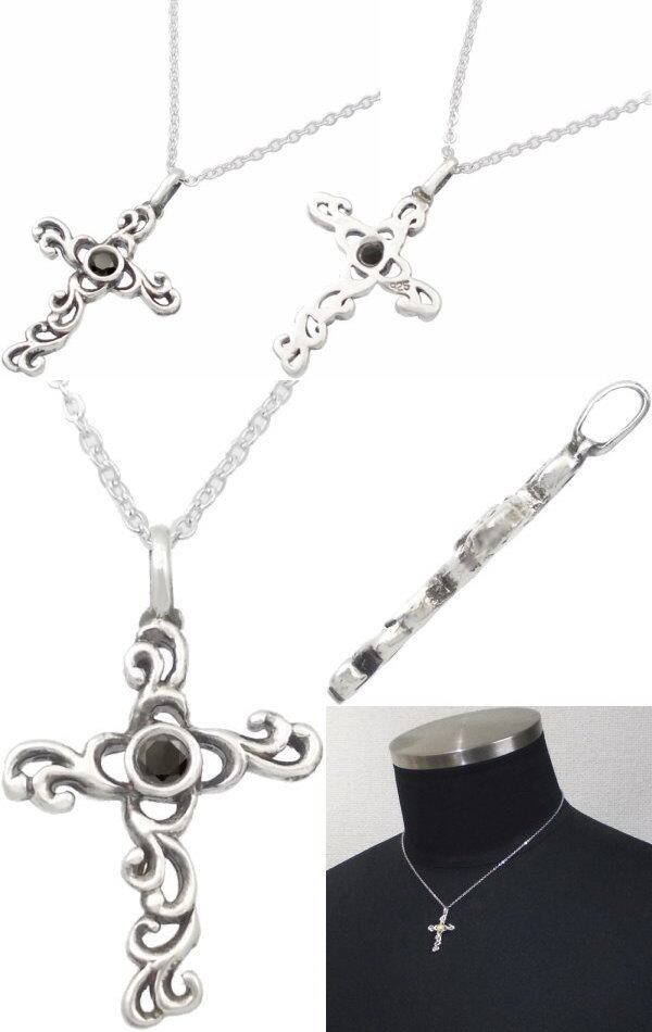 ブラックCZ ブラック アラベスク クロス シルバーチャームネックレス△キュービックジルコニア使用*BP-1044
