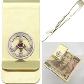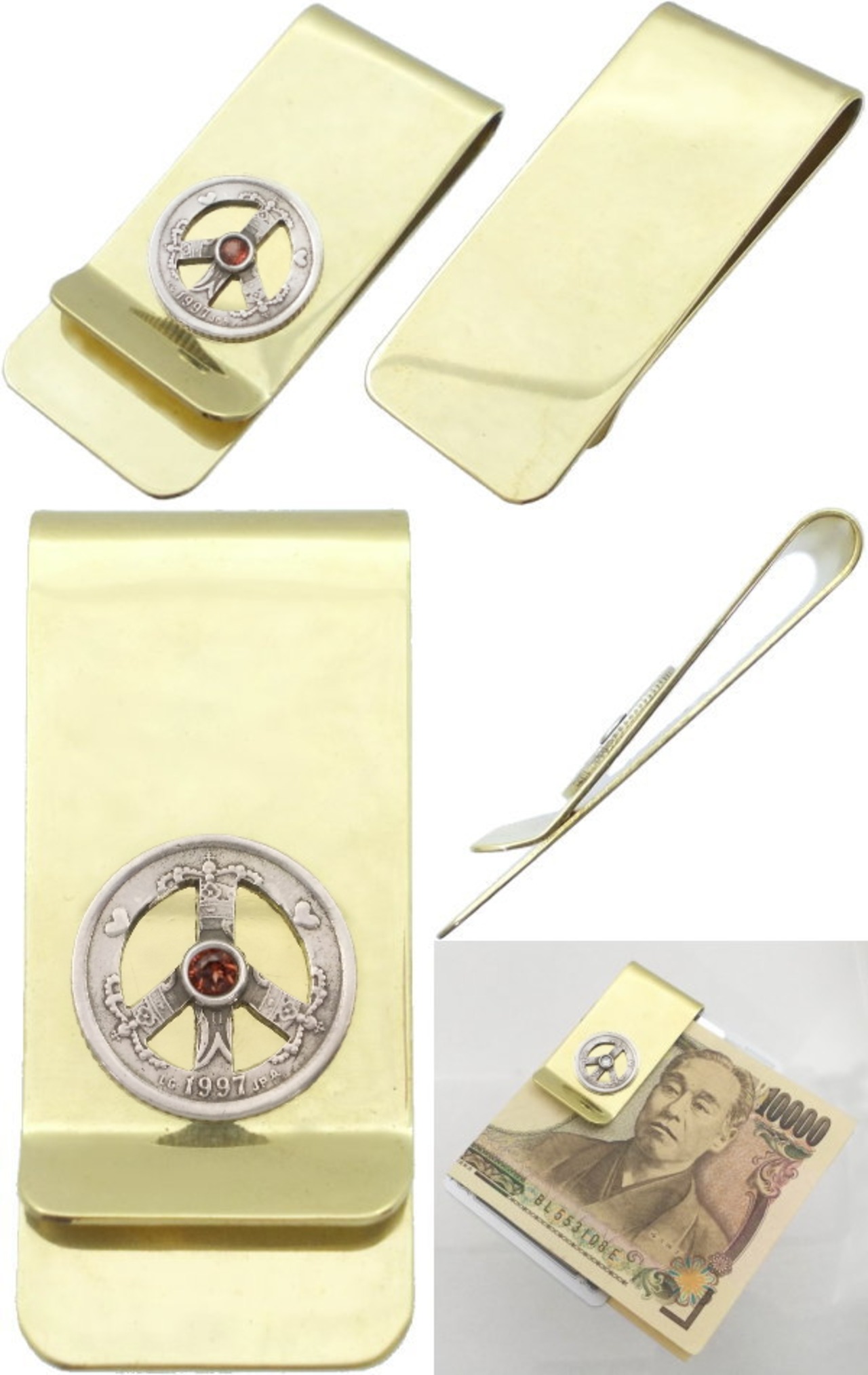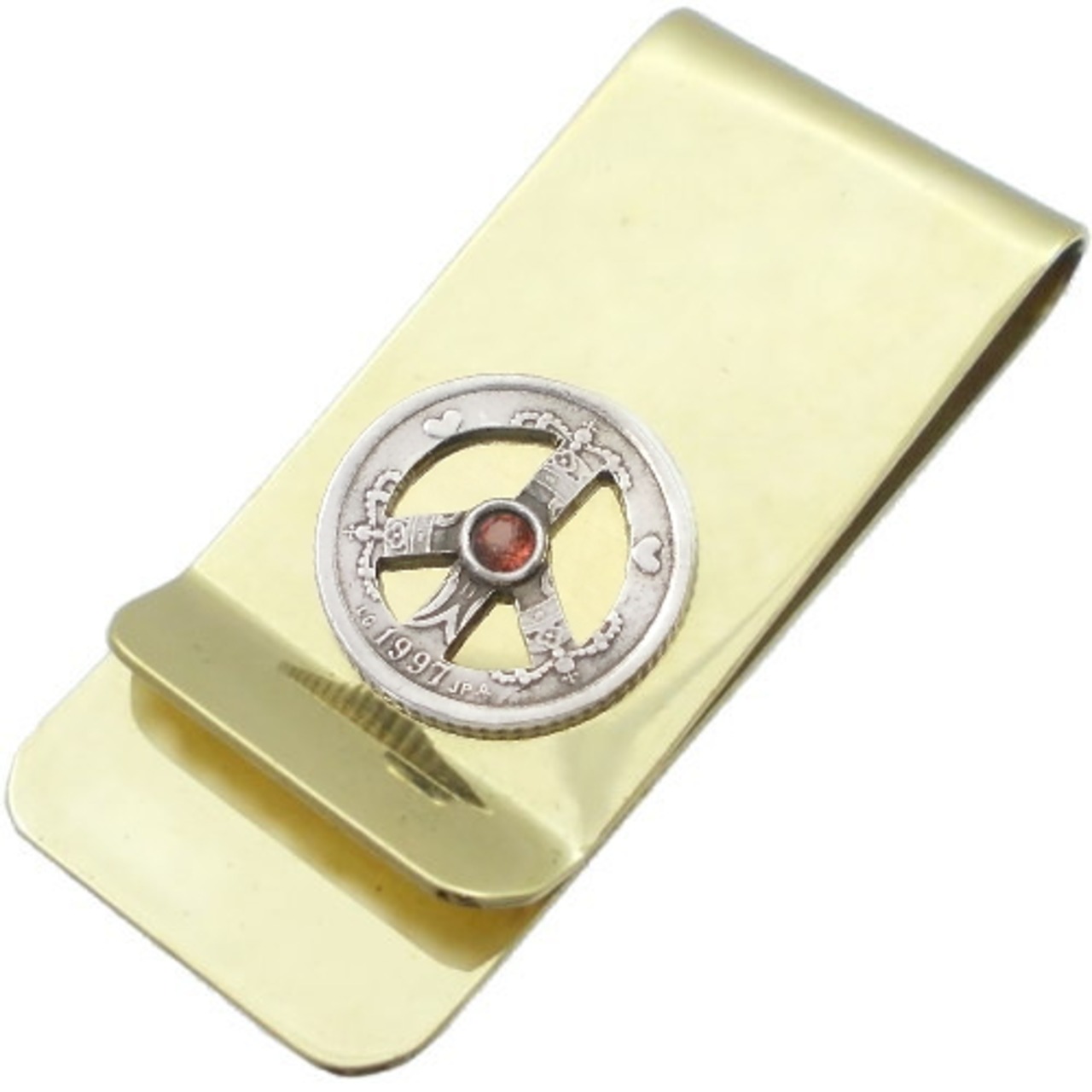 (1月)ガーネット ピース 1クローネ コインブラスマネークリップ 誕生石*BM-1003