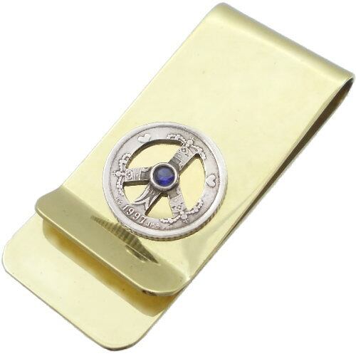 (9月)サファイア ピース 1クローネ コインブラスマネークリップ 誕生石*BM-1003
