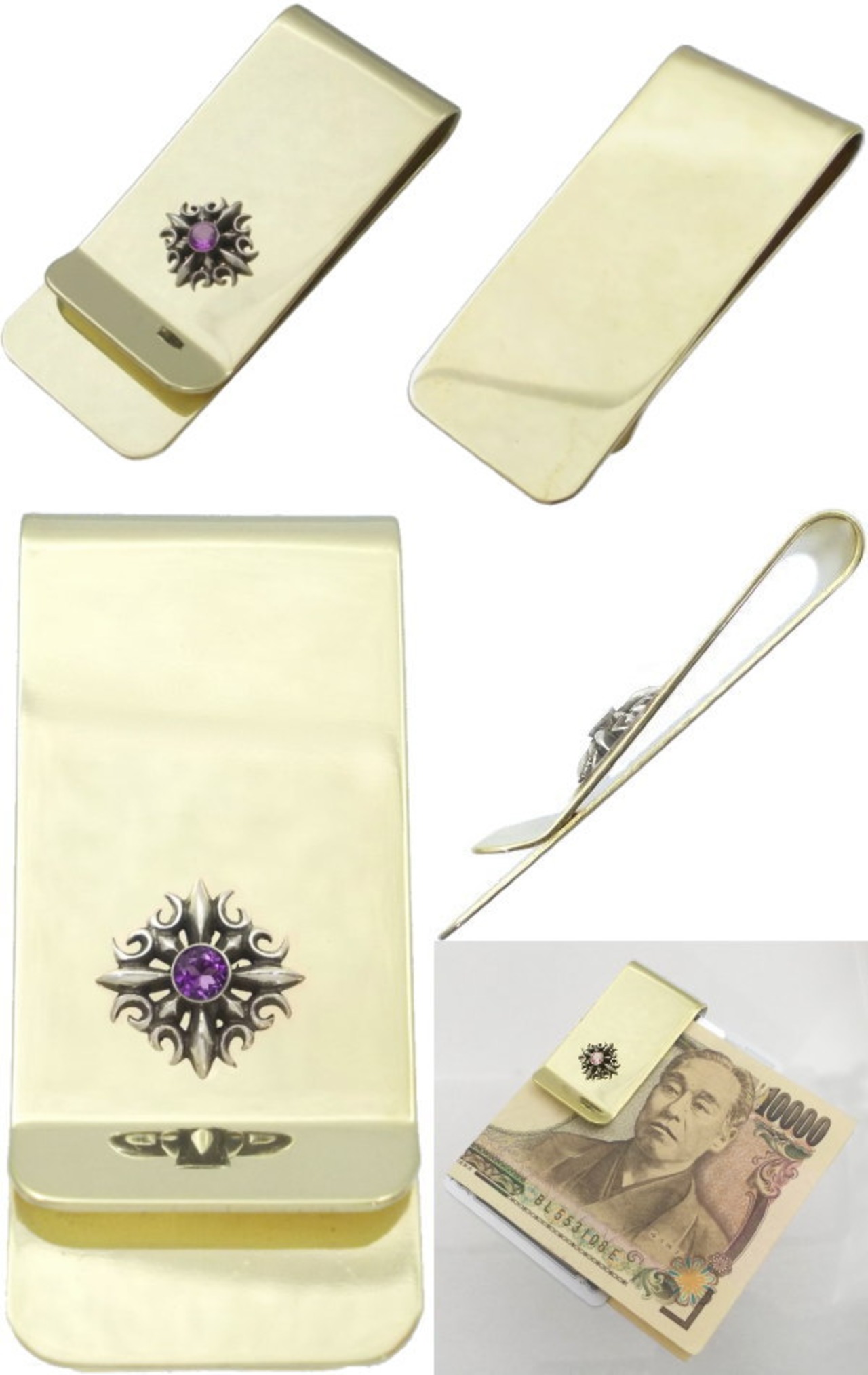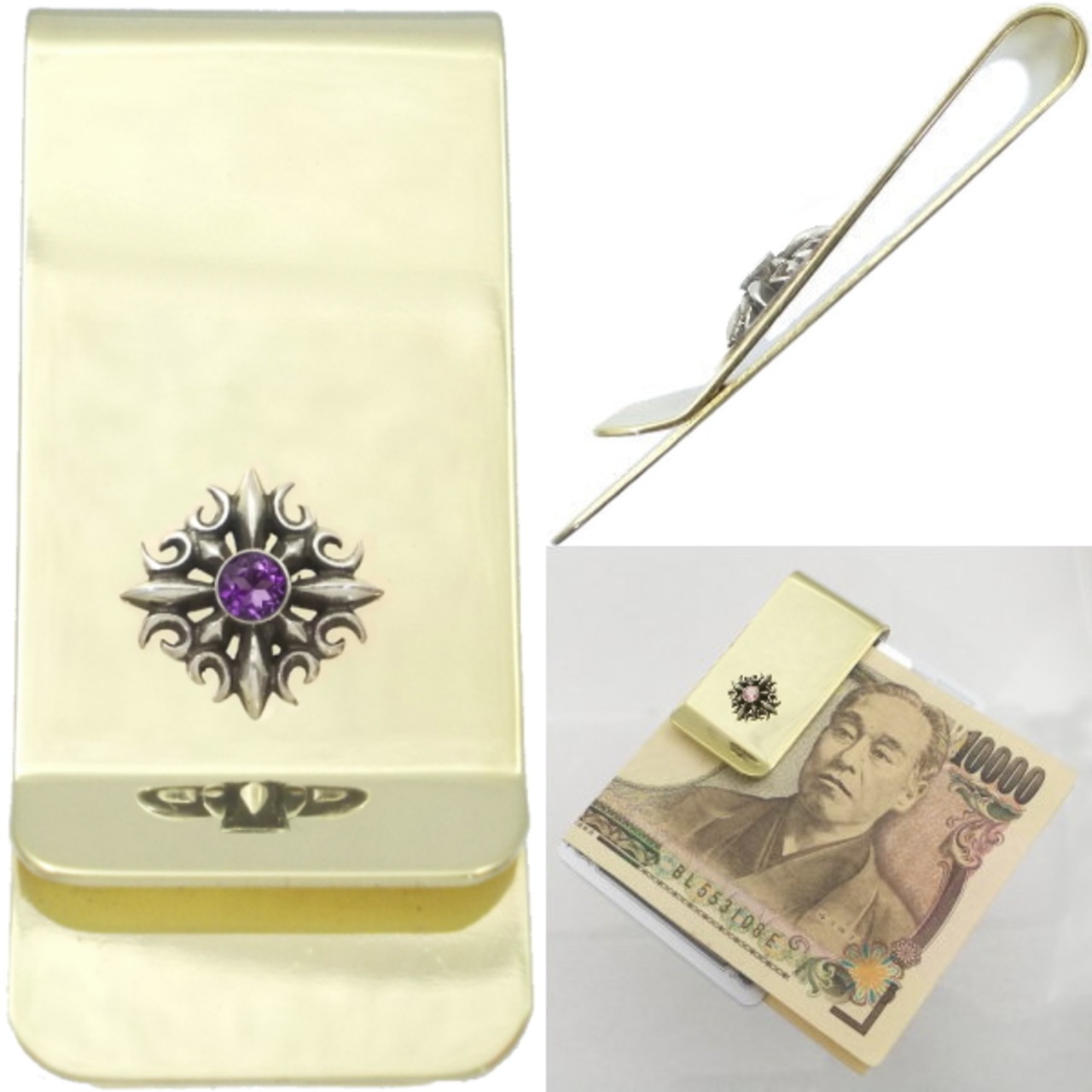 (2月)アメジスト ゴシック クロス ブラスマネークリップ 誕生石*BM-1009