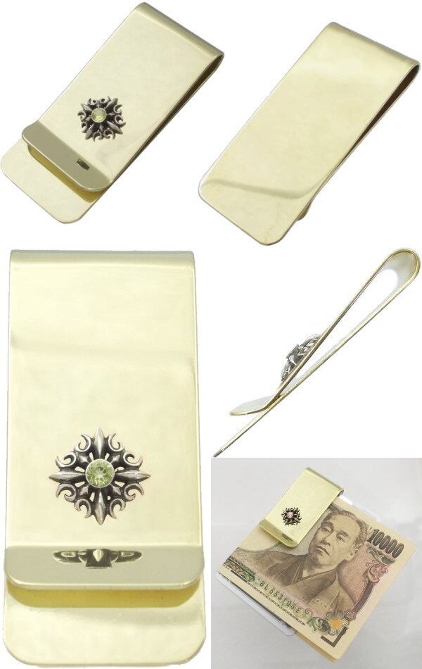 (8月)ペリドットゴシック クロス ブラスマネークリップ 誕生石*BM-1009