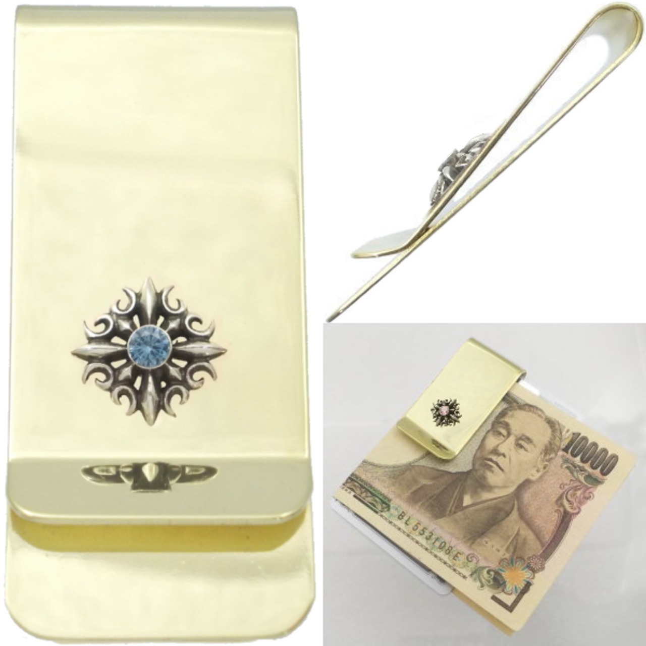 (12月)タンザナイト ゴシック クロス ブラスマネークリップ 誕生石*BM-1009