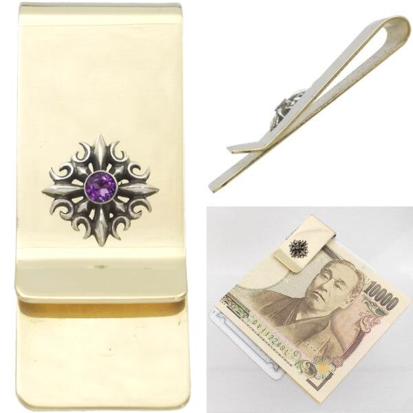(2月)アメジスト ゴシック クロス スリムブラスマネークリップ 誕生石*BM-1010