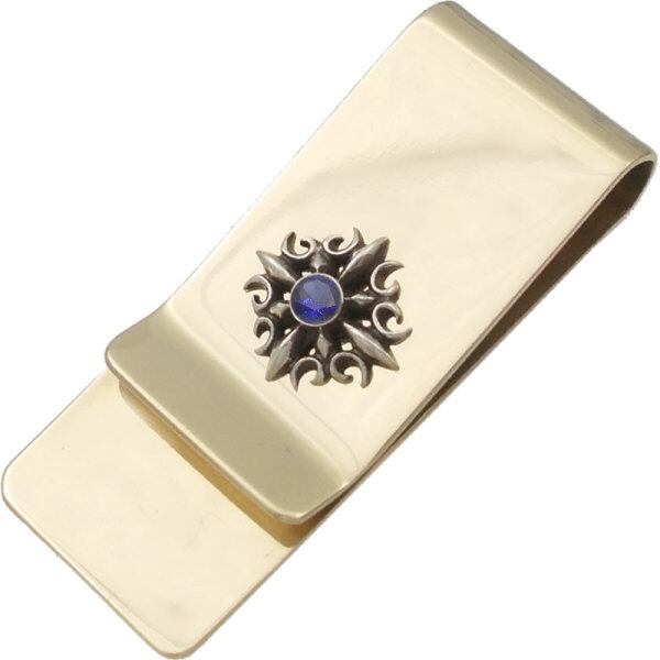 (9月)サファイア ゴシック クロス スリムブラスマネークリップ 誕生石*BM-1010